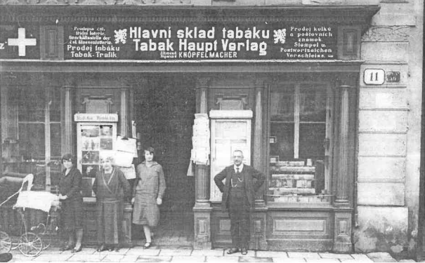 obchod s tabákem ve vlastnictví rodiny Knöpfelmacherů